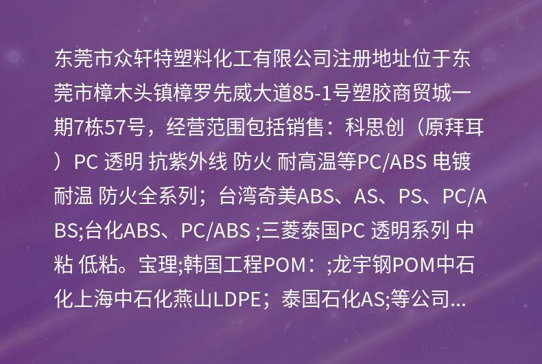 欢迎访问东莞市众轩特塑料化工有限公司